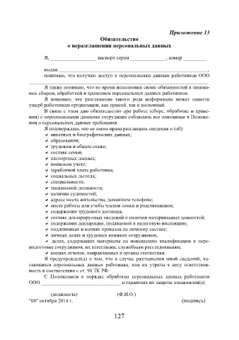 нии) с персональными данными сотрудника соблюдать все описанные в Положе-