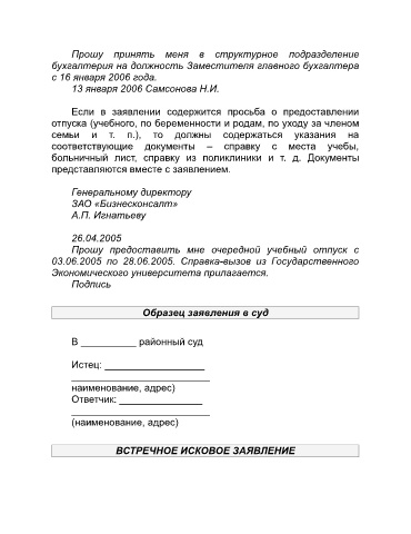 Образец заявления в суд