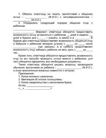 возможность истцу встречаться с ребенком __ дней в неделю: __