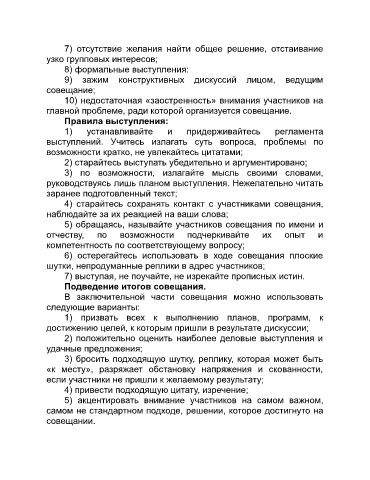 4) старайтесь сохранять контакт с участниками совещания,