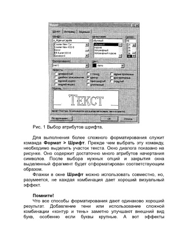 Рис. 1 Выбор атрибутов шрифта.