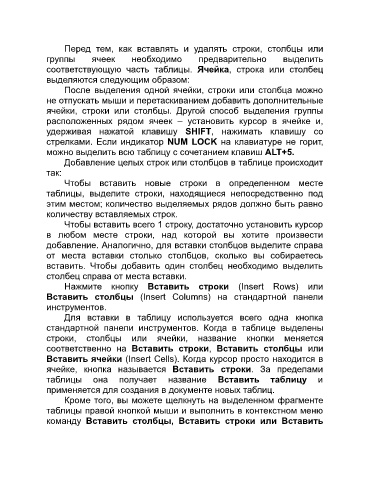 Добавление целых строк или столбцов в таблице происходит
