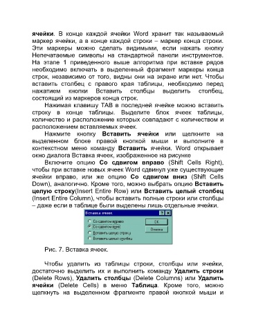Рис. 7. Вставка ячеек.