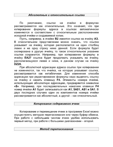 скопирована в другую ячейку, то такое относительное указание