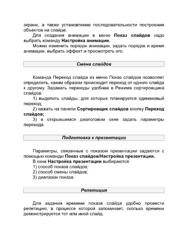 2) способ смены слайдов;